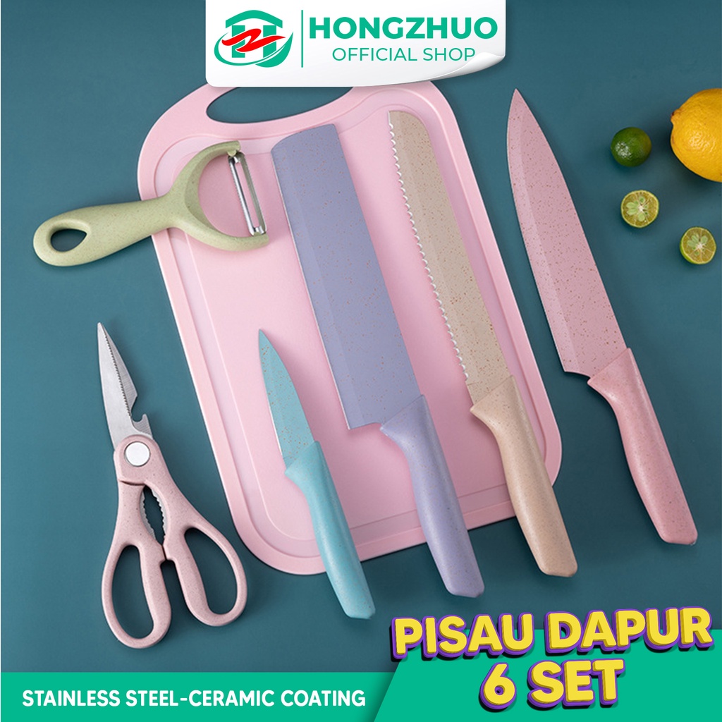 Beli Hongzhuo 6in1 Pisau Dapur Set Korean Style Kitchen Knife Stainless Steel Anti lengket High Quality di sini