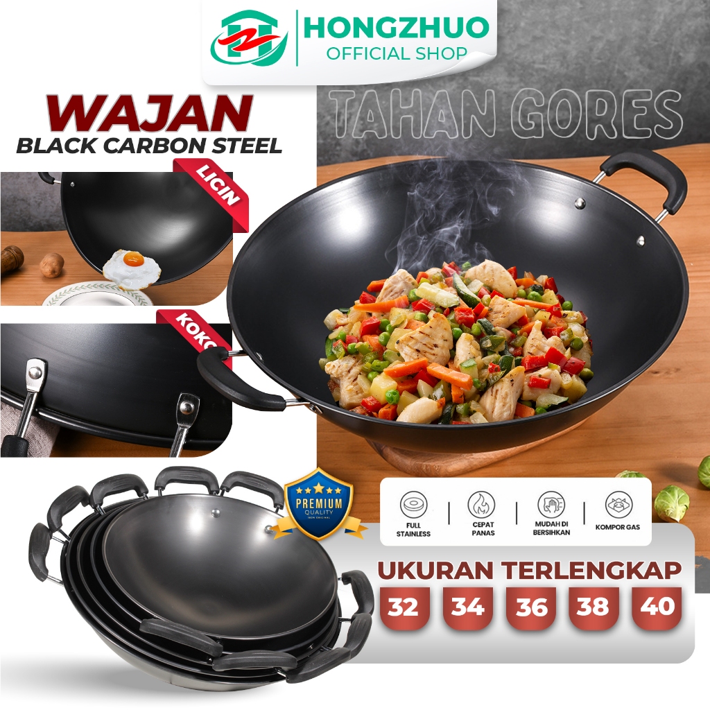 Hongzhuo Black Steel wok Wajan Hitam Mini Stainless Steel Tebal 32CM/34CM/36CM/38CM - Kuali Penggorengan Anti Lengket - Wajan Kecil Tumis Kuali Serabi Anti Karat dijual oleh toko Hongzhuo Official Shop dengan lokasi KAB. TANGERANG.