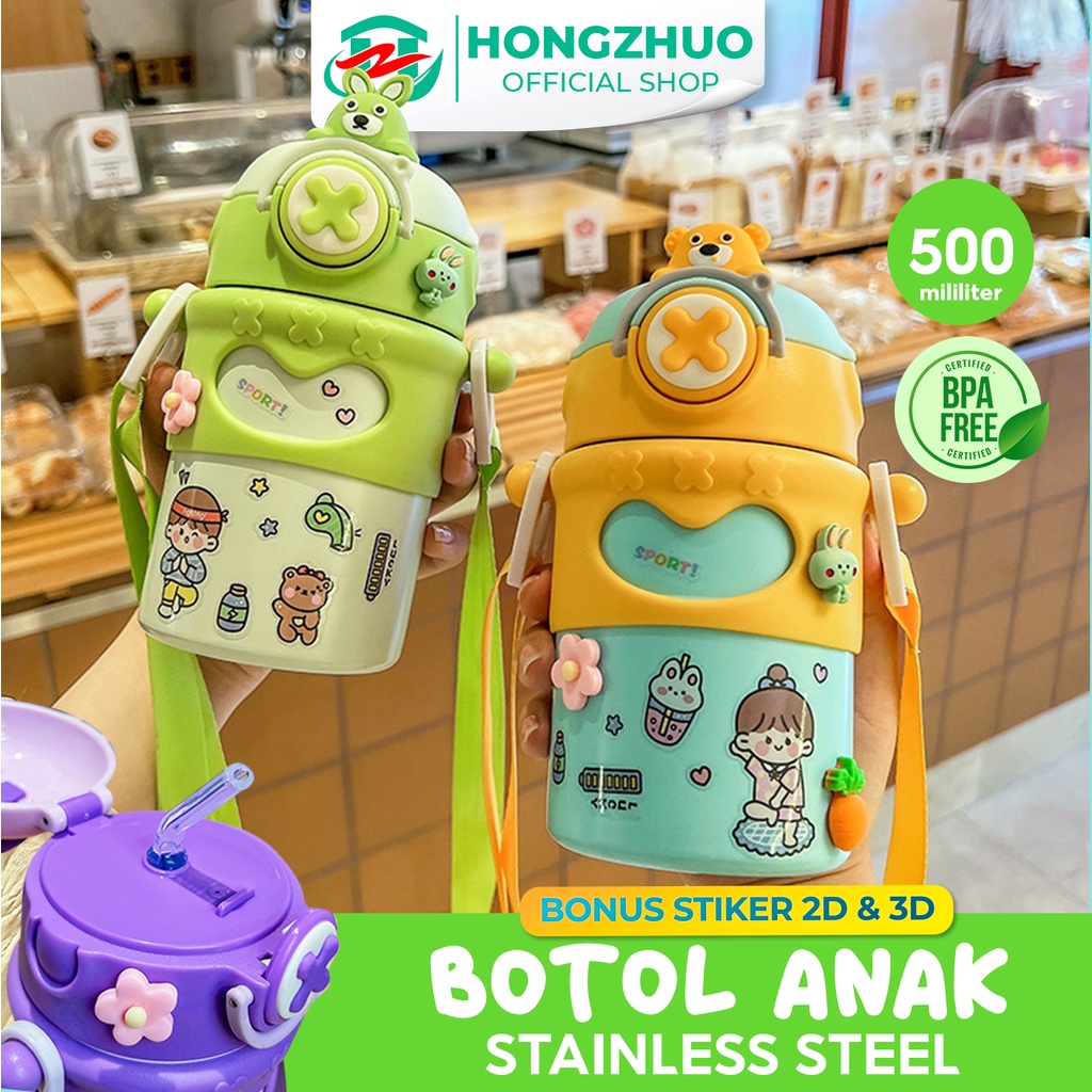 Beli Hongzhuo Botol Minum Anak Stainless Stell 500ml Free Stiker 2D+3D Stainless Steel di sini