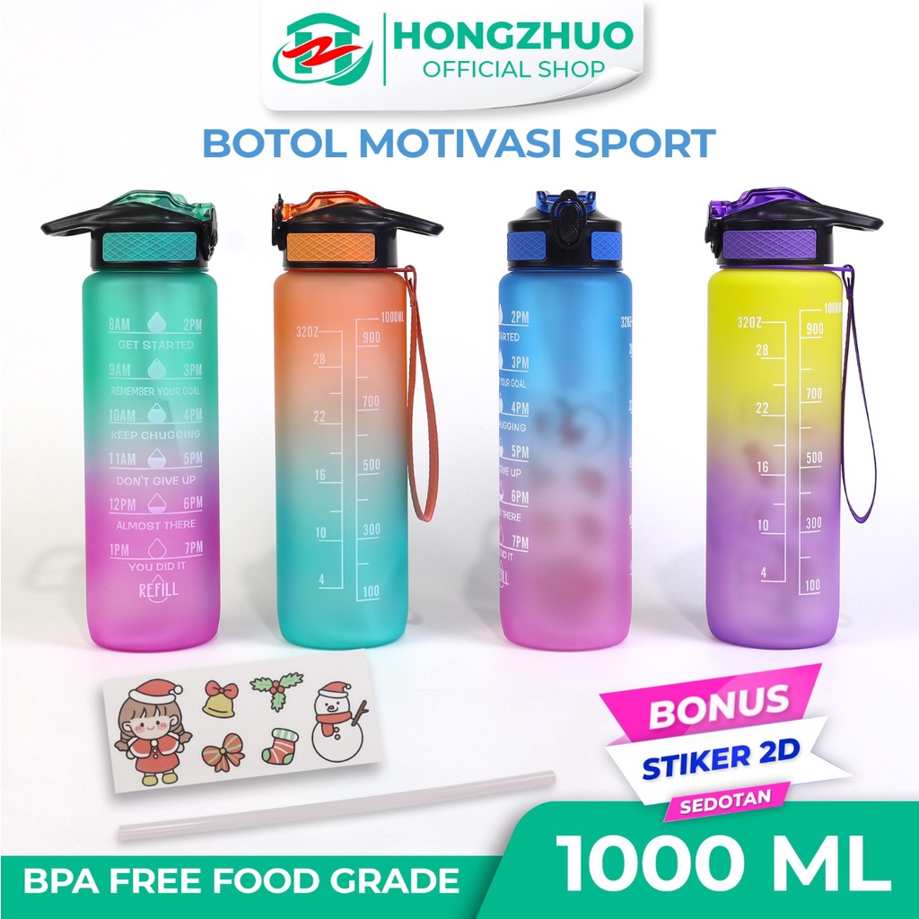 Beli Hongzhuo Botol Motivasi 1L Penanda Waktu Korea Viral Warna Gradasi Pelangi BPA FREE BONUS STIKER 2D+3D di sini