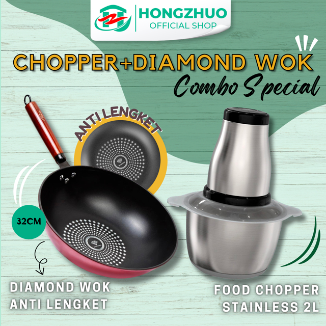 Hongzhuo Diamond Wok Pan 32CM Anti lengket food chopper Stainless steel 2L Bundling marble panci dijual oleh toko Hongzhuo Official Shop yang berlokasi di KAB. TANGERANG.