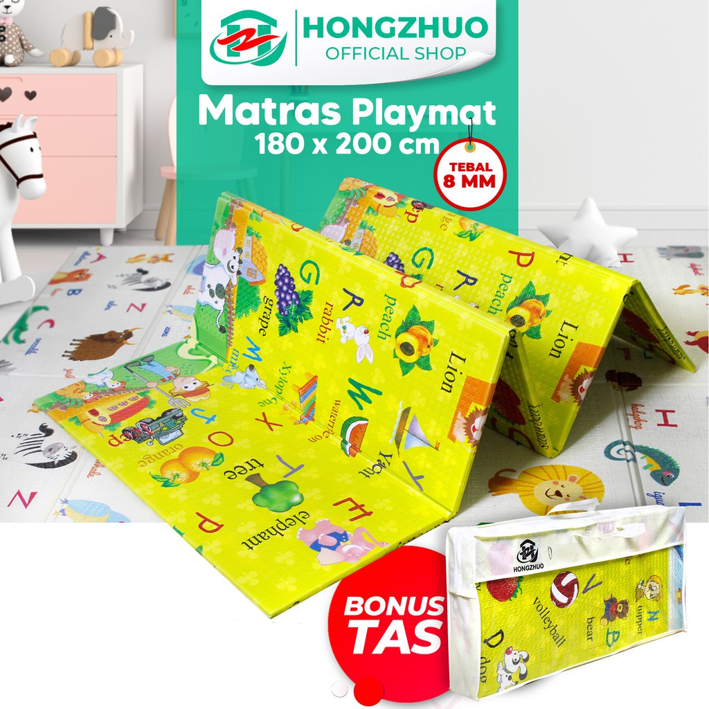 Nama produknya adalah Hongzhuo Folding Playmat 200 x 180 cm Playmate Lipat Anak XPE Matras Bayi TEBAL 8 MM ( Bonus Tas). Saat postingan ini diupload sudah terjual 1115 kali. Harga yang ditawarkan pun bagus, produk yang punya rating 4.8 dari 5 bintang ini ditawarkan dengan harga mulai 145000 .