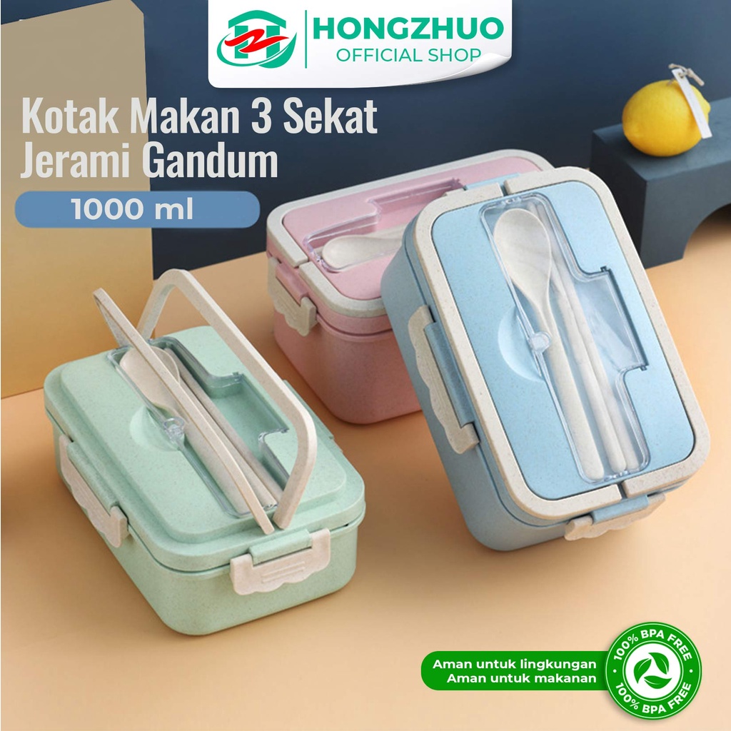 Hongzhuo Kotak Bekal Tempat Bekal Makan Kotak Makan PP Jerami Gandum1000ML Bonus Sendok + Garpu dijual oleh toko Hongzhuo Official Shop dengan lokasi KAB. TANGERANG.
