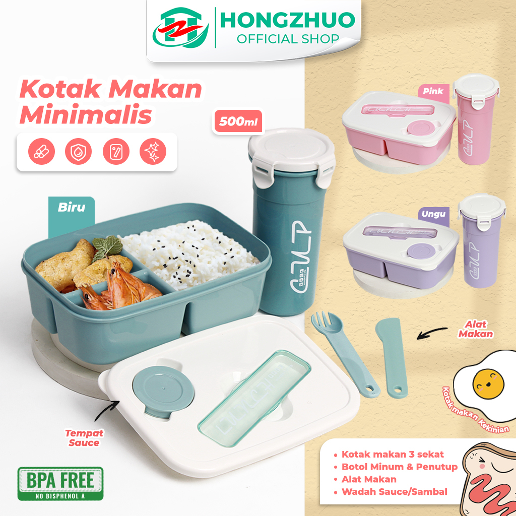 Beli Hongzhuo kotak Makan 1 Set Kotak Makan 3Sekatan+Botol Minum 500m Free Sendok Plastik BPA FREE di sini