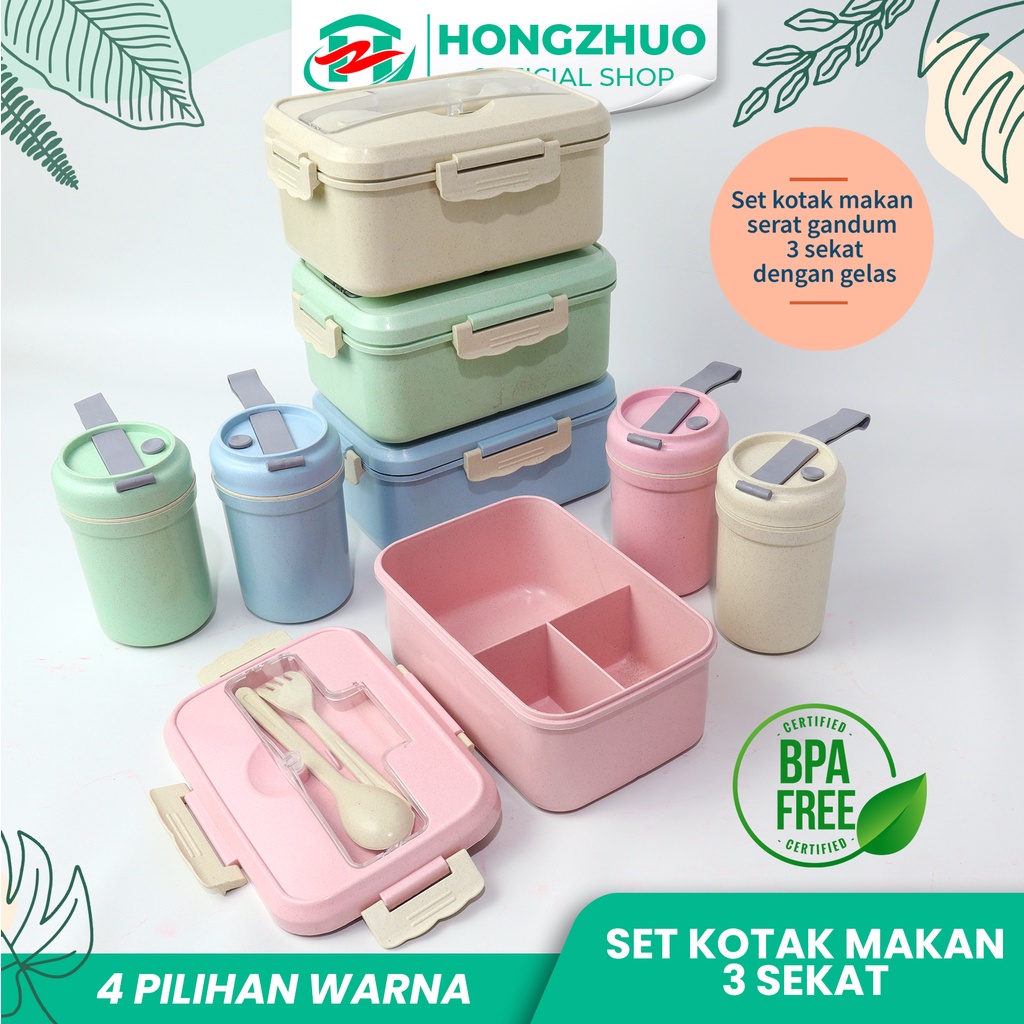 Hongzhuo Kotak Makan Bekal Set dengan Gelas Mempunyai 3 Sekat PP Jerami Gandum dijual oleh toko Hongzhuo Official Shop dengan lokasi KAB. TANGERANG.