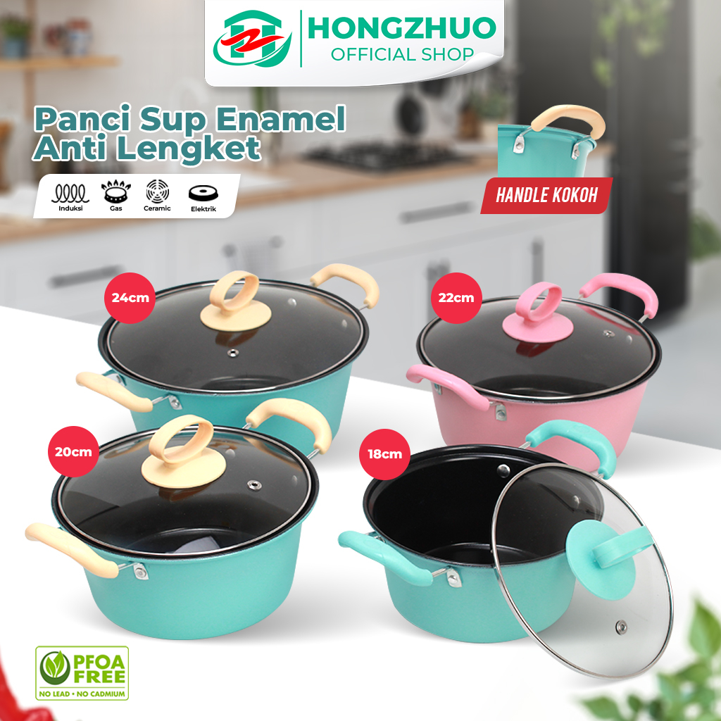 Hongzhuo Panci Kuah Enamel Soup Pot 18 20 22 24cm Panci Susu Tutup Kaca Anti Lengket dijual oleh toko Hongzhuo Official Shop dengan lokasi KAB. TANGERANG.