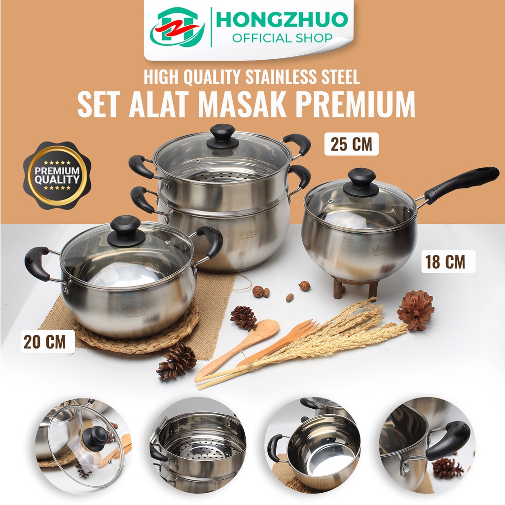 Beli Hongzhuo Panci Kukus Set Full Stainless Steel 4 Set Cookware Set High Quality Anti Lengket di sini