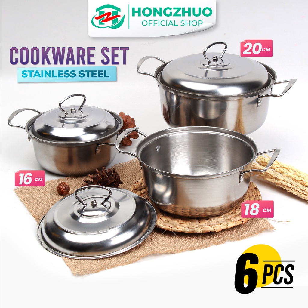 Beli Hongzhuo Panci Set 6in1 Stainless Steel / Rebus / Goreng Dengan Tutup Panci di sini