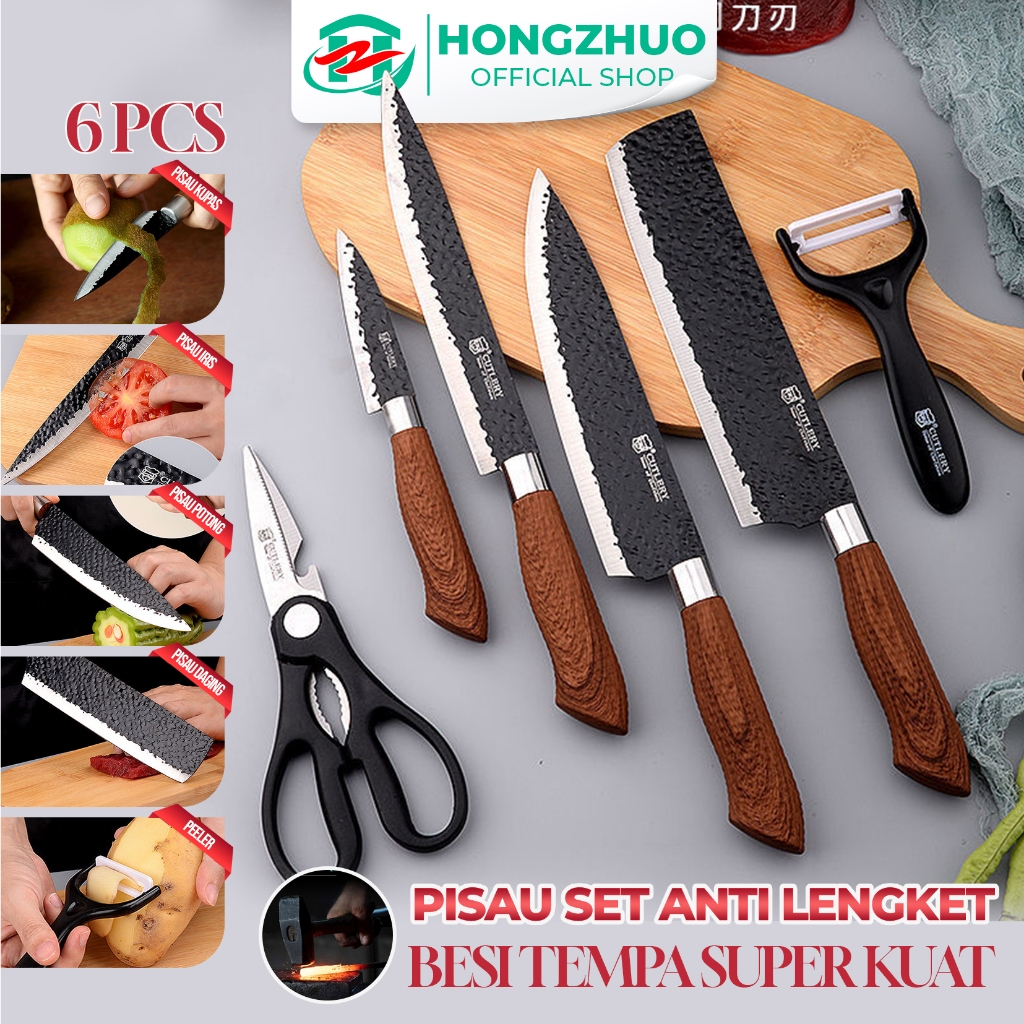 Hongzhuo Pisau Dapur Set isi 6 pcs Wooden Holder Kitchen Knife Set Tidak Lengket Sangat Tajam Pisau dijual oleh toko Hongzhuo Official Shop dengan lokasi KAB. TANGERANG.