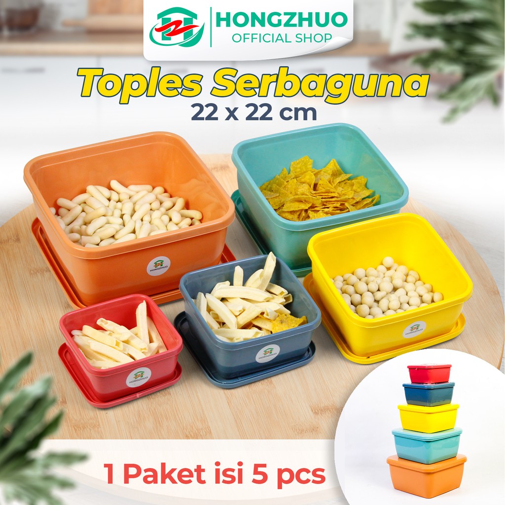 Hongzhuo Toples Kue Kering Kotak Bumbu Set 5 pcs Kotak Penyimpanan Makanan Square Model Food Grade dijual oleh toko Hongzhuo Official Shop dengan lokasi KAB. TANGERANG.