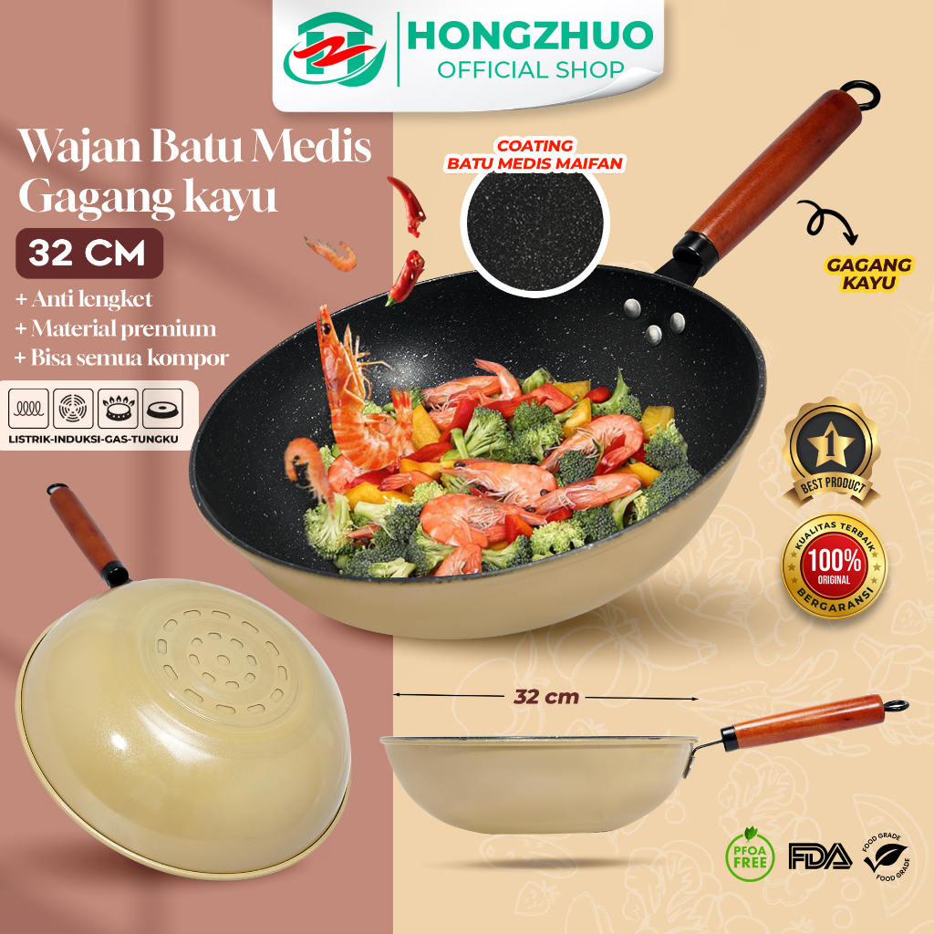 produknya adalah Hongzhuo Wajan Batu Medis Gagang Kayu 32cm Fry Pan / Wajan Maifan/ Wajan Penggorengan High Quality. Saat postingan ini diupload sudah terjual 25 kali. Harga yang ditawarkan pun terjangkau, produk yang punya rating 4.3 dari 5 bintang ini ditawarkan dengan harga mulai 86000 .