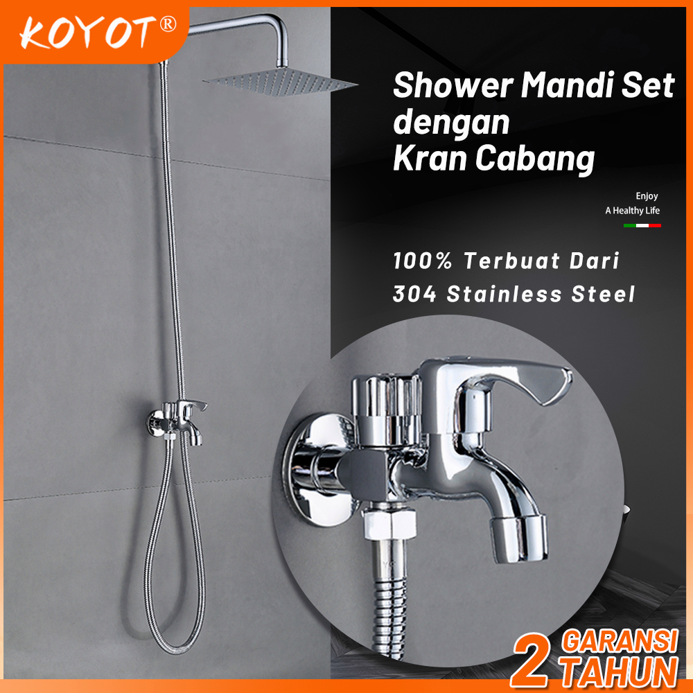 Beli KOYOT Paket Shower Head Shower Kamar Mandi Full Set Kran Cabang Shower 304 Stainless Steel Persegi 8 " dengan Kran Cabang 1/2 Inch / Shower Arm / Selang Fleksibel / Kepala Shower Mandi Shower Kamar Mandi Satu Set di sini