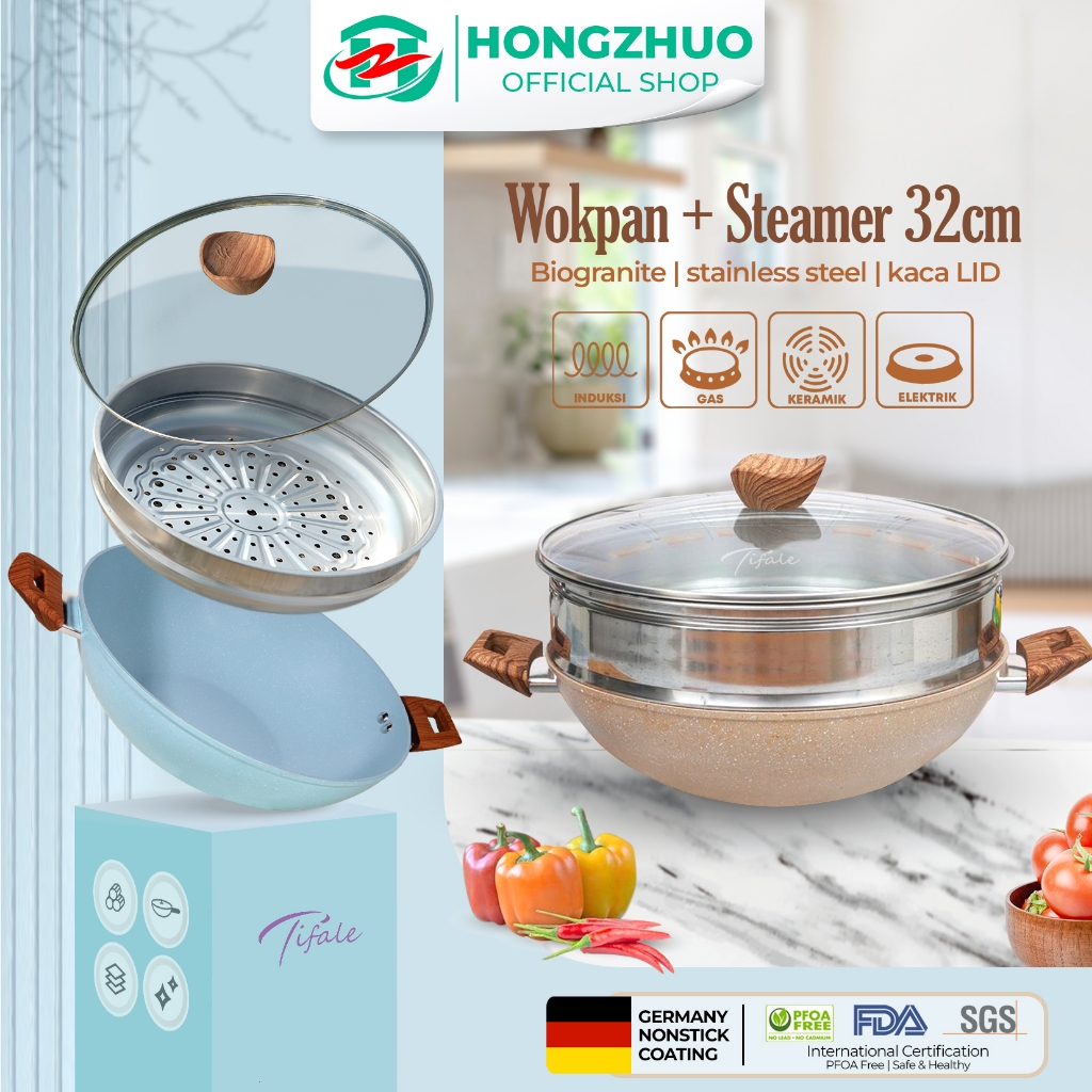 Tifale By Hongzhuo [2IN1] Wokpan 32CM + Glass Lid + Granite Steamer Non Stick / Alat Masak Wok dengan Panci Kukus Granite Anti Lengket dan Tutup / Dandang Steamer Kukus Siomay dan Bakpao 2in 1 + Tutup dijual oleh toko Hongzhuo Official Shop yang berlokasi di KAB. TANGERANG.