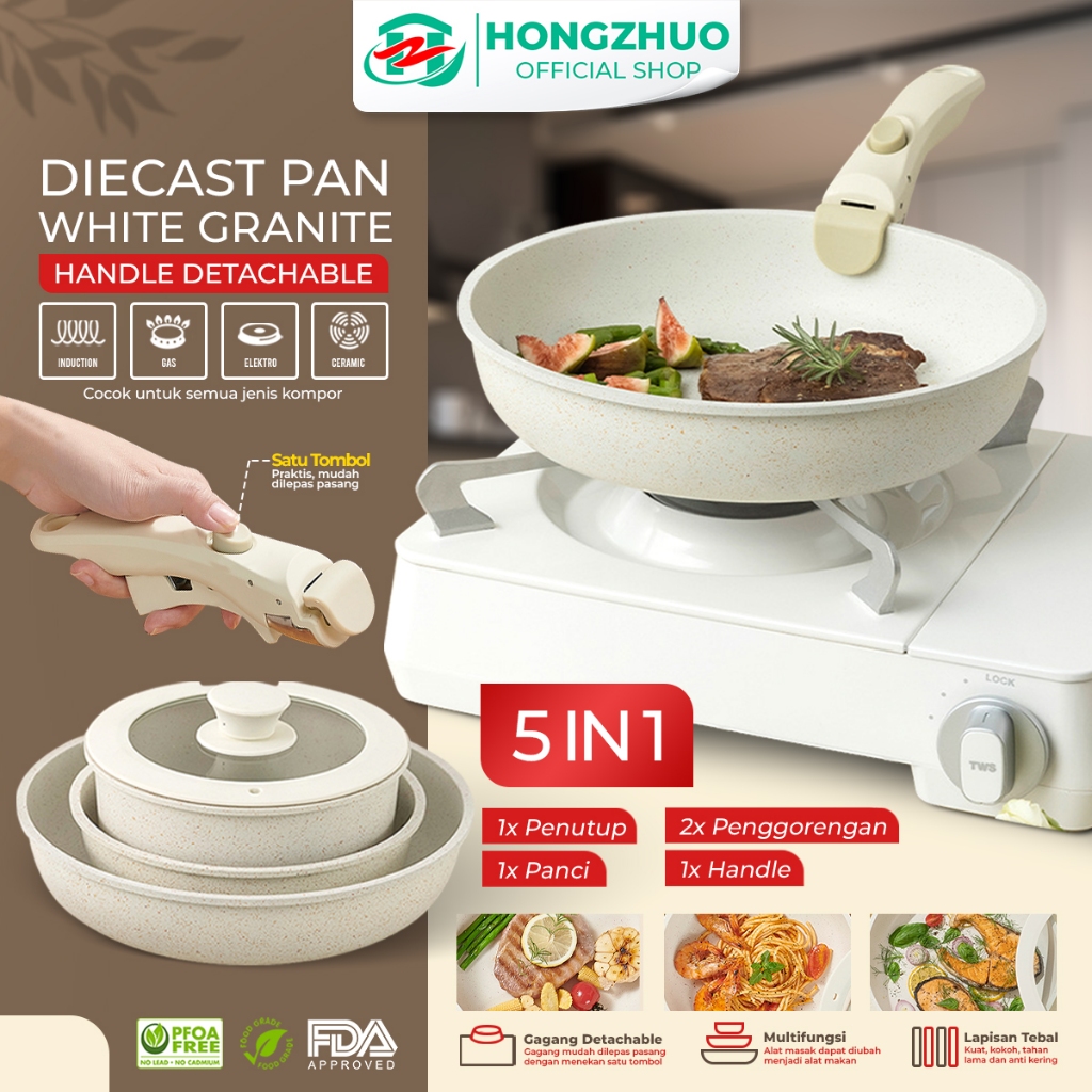 Beli Tifale By Hongzhuo White Granit 5IN1 Antilengket dengan Pegangan Yang Dapat Dilepas Untuk Semua Kompor PFOA | Diecast Pan | Granit Putih Saucepan Frypan Wokpan | di sini