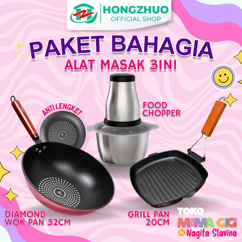 Beli [TOKOMAMAGIGI] Hongzhuo (COD) Paket Bahagia diamond wok pan Wajan Grill pan dan Food chopper stainless Bundling marble panci [BUNDLE] di sini
