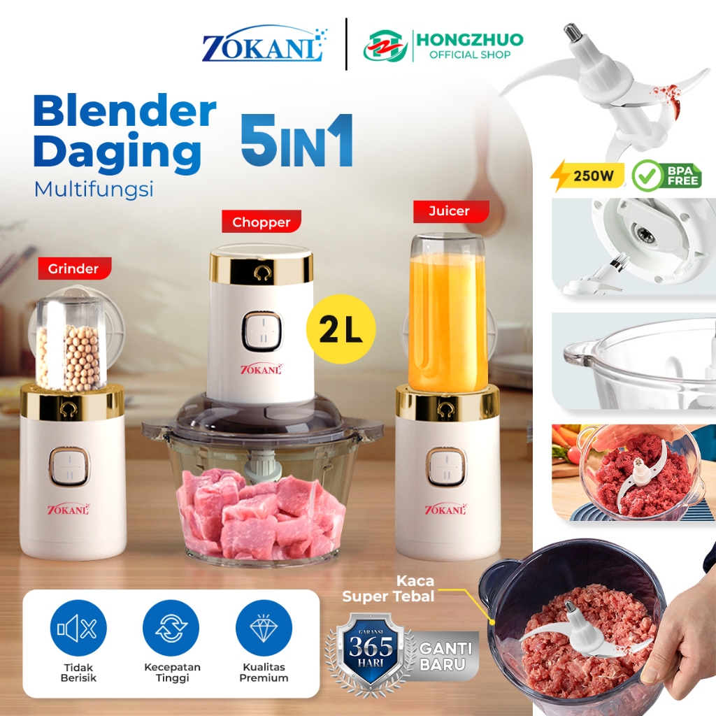 Zokani by Hongzhuo 5 in 1 Premium Food Chopper 250 Low Watt BPA Free / Blender Daging / Baby Food Processor / Penggiling Daging / Chopper Daging / Kado Pernikahan dijual oleh toko Hongzhuo Official Shop dengan lokasi KAB. TANGERANG.
