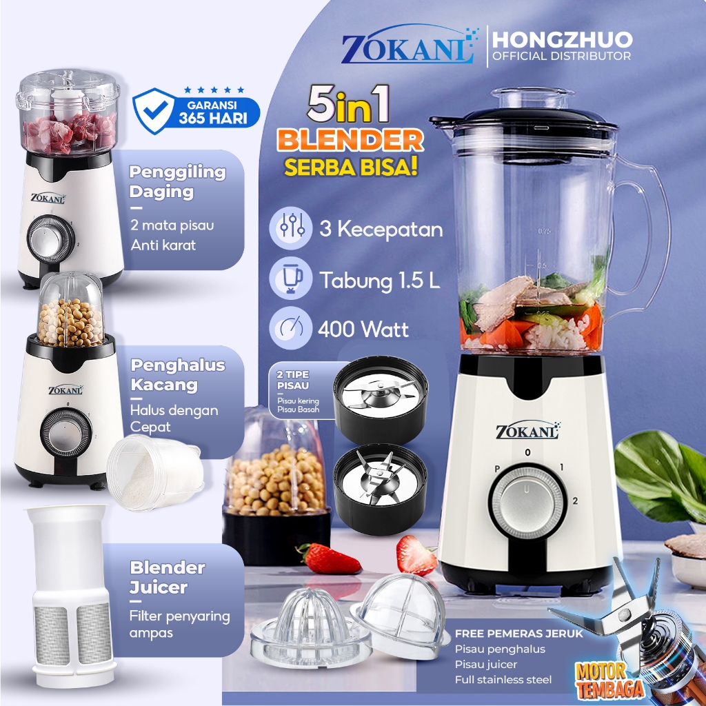 ZOKANI by Hongzhuo 5IN1 Blender 1.5L 400Watt Plastik Multifungsi chopper juicer penciling daging serbaguna HMB-304 dijual oleh toko Hongzhuo Official Shop yang berlokasi di KAB. TANGERANG.